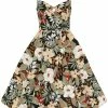 This beauty is pure vintage romance with her cotton-mix with fine stretch and romantic flowers. The wide neckline is adorned with a little v for an irresistible look.