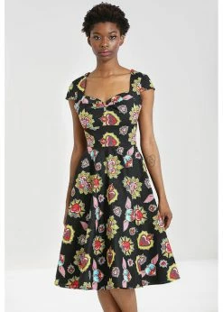 She almost looks like a bolero with her playful cap sleeves! The heart-shaped neckline has an elegant gathering in the middle, for an extra charming bosom 😉 Her lovely cotton-mix has fine stretch, so she’s lightweight to wear and fits beautifully.