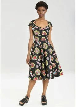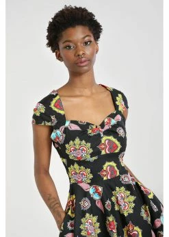 The waist is accentuated by the waistband, from where she flares into a full skirt with pockets. Stunning with one of our petticoats to make the hearts beat faster! She closes with a zipper and a hook in the back and ends below the knees for a height of 1,70 m.