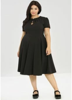 From the waistband, she flares into a lovely full skirt that you can perfectly wear with one of our petticoats for the ultimate vintage-look. She closes with a zipper and hook in the back and for a height of 1,70 m she ends below the knees.