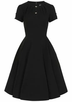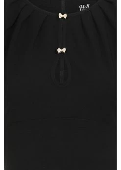What a beauty she is with her short cap sleeves with keyholes, a detail that returns at the chest, and yes: bow-buttons! She has an elegant fit thanks to the playful gatherings around the neck and the seams at the chest.