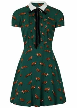 The little white collar and the black velvet bow make her look even more playful. Her decorative pleats across the front add a beautifull fit and because of her 100% viscose material she’s lovely and airy. From the waist down she flares out into a playful skirt which with a height of 1,70 reaches above the knee and closes with a zipper on the back.