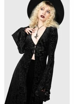 Incredibly soft, a perfect decadent extra layer over your look, or boudoir-worthy with a nice set 😉 She flares elegantly at the long sleeves and closes with buttons in the front, from where she falls to the ground dramatically…