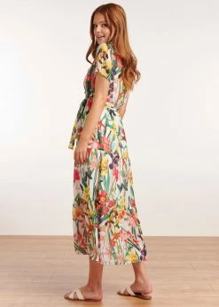 Be the first to review “Smashed Lemon Tropical Flowers 70’s Maxi Dress White” Cancel reply