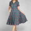 Delores is one of their best sellers and justly so. Not only does she feel like a dream to wear because of her extraordinarily soft, comfortable bengaline with a lovely stretch, the cut is also a 50’s dream. She has a wrap by the v-neck and pleats on the chest and shoulders. The half sleeves are playfully folded and have a decorative button.