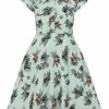 The waist is accentuated by the black velvet straps that cross each other in the front, the neckline is made of black velvet, too. From the waist she flares into a playful skirt, that is just a bit shorter on the sides and for a height of 1.70 m ends above the knees. She closes with a zipper and hook on the back.